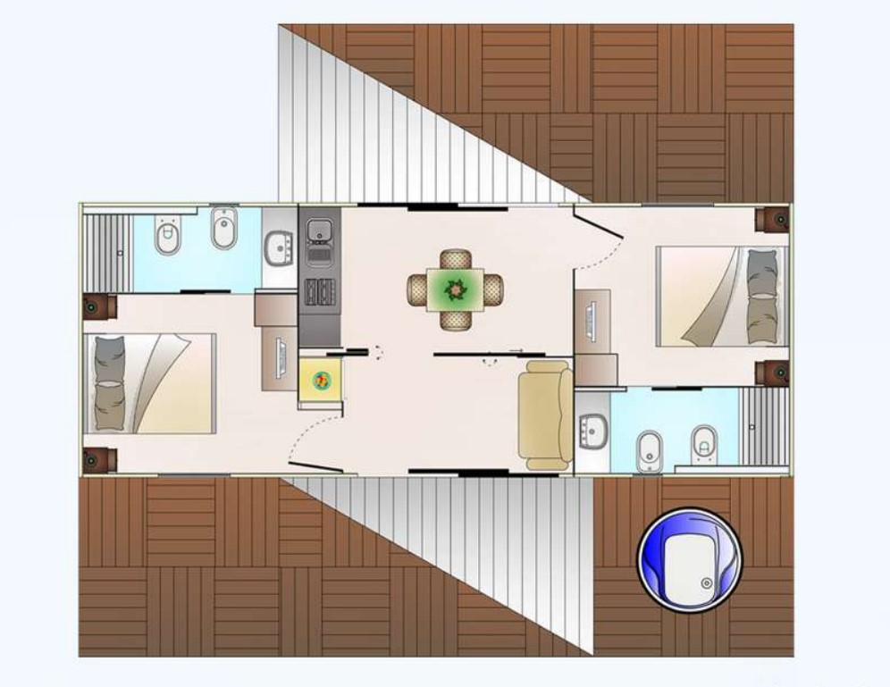 Questa casa mobile si distingue per le sue linee ben definite e per la distribuzione ottimale degli spazi.